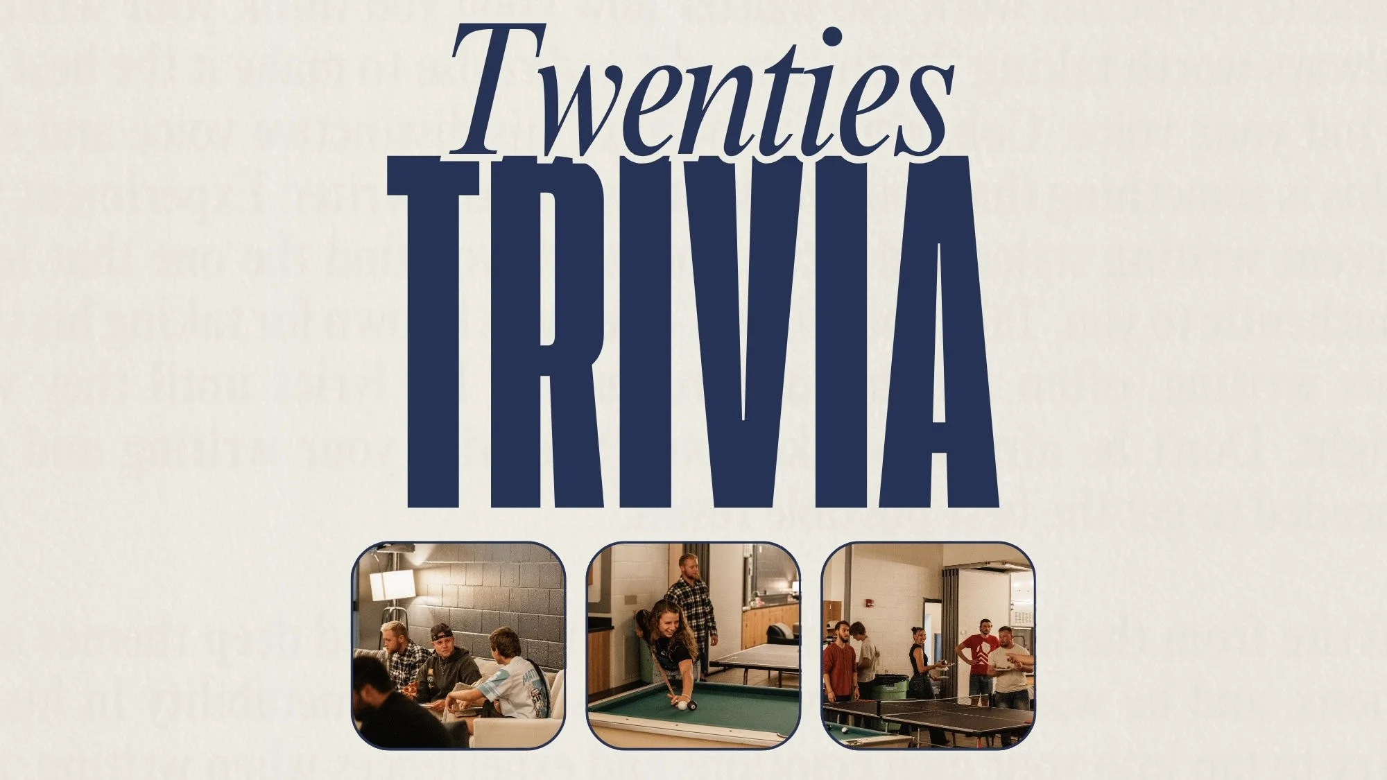 Ages 18-29, join the Harvest 20’s for this fun trivia night. No pressure, no experience needed, just show up to compete and win prizes. Don’t miss it!